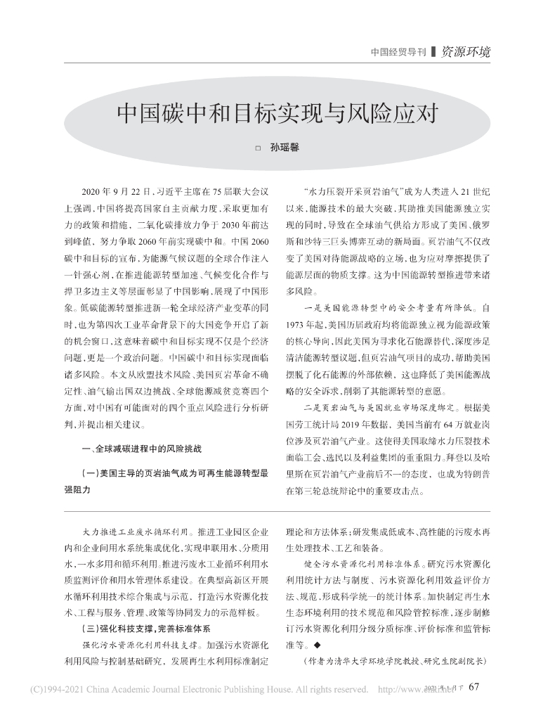 中国碳中和目标实现与风险应对.pdf