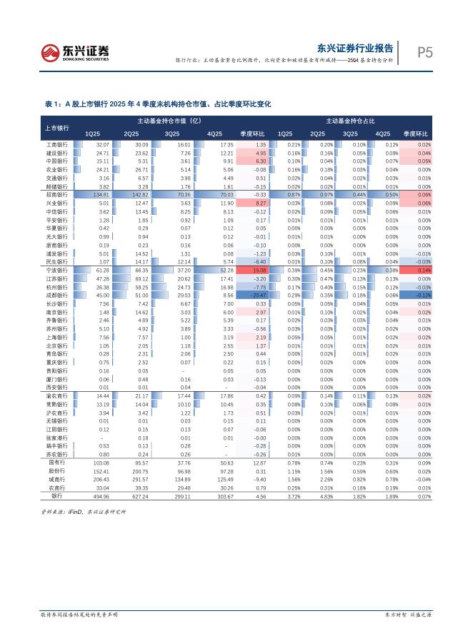 东兴证券:银行行业25Q4基金持仓分析:主动基金重仓比例微升,北向资金和被动基金有所减持.pdf
