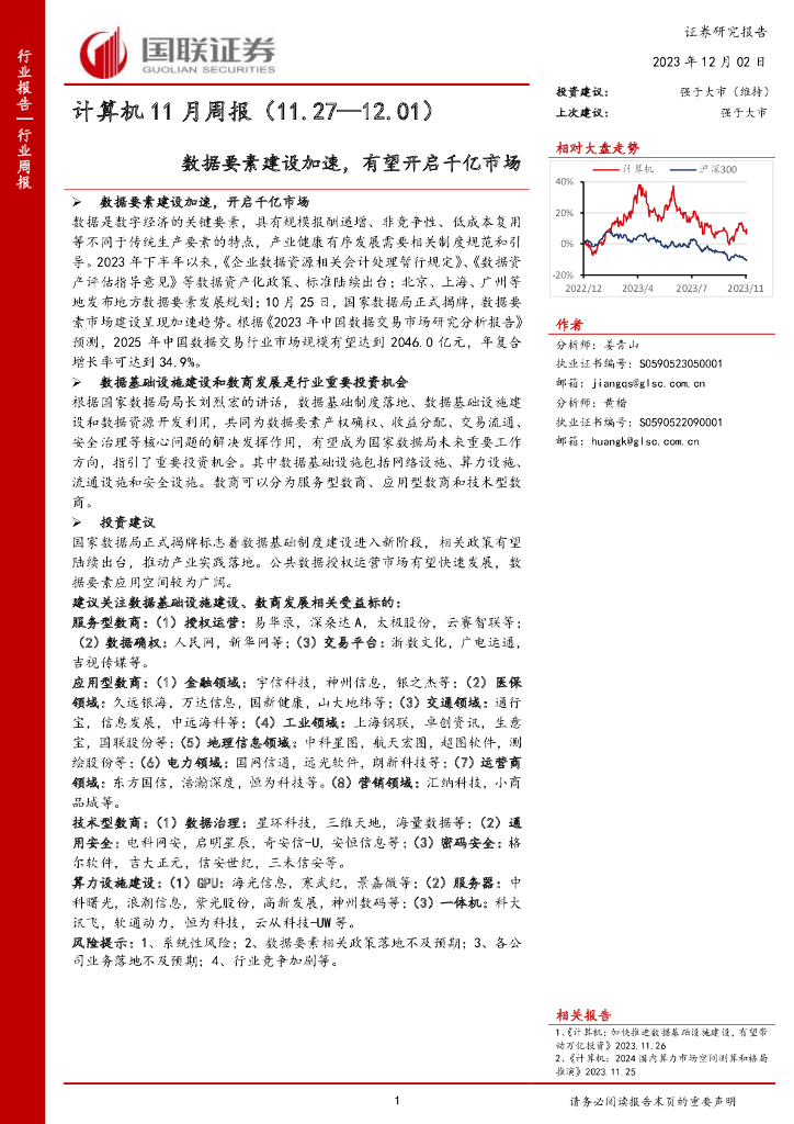 国联证券:计算机11月周报:数据要素建设加速,有望开启千亿市场.pdf