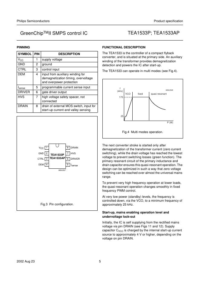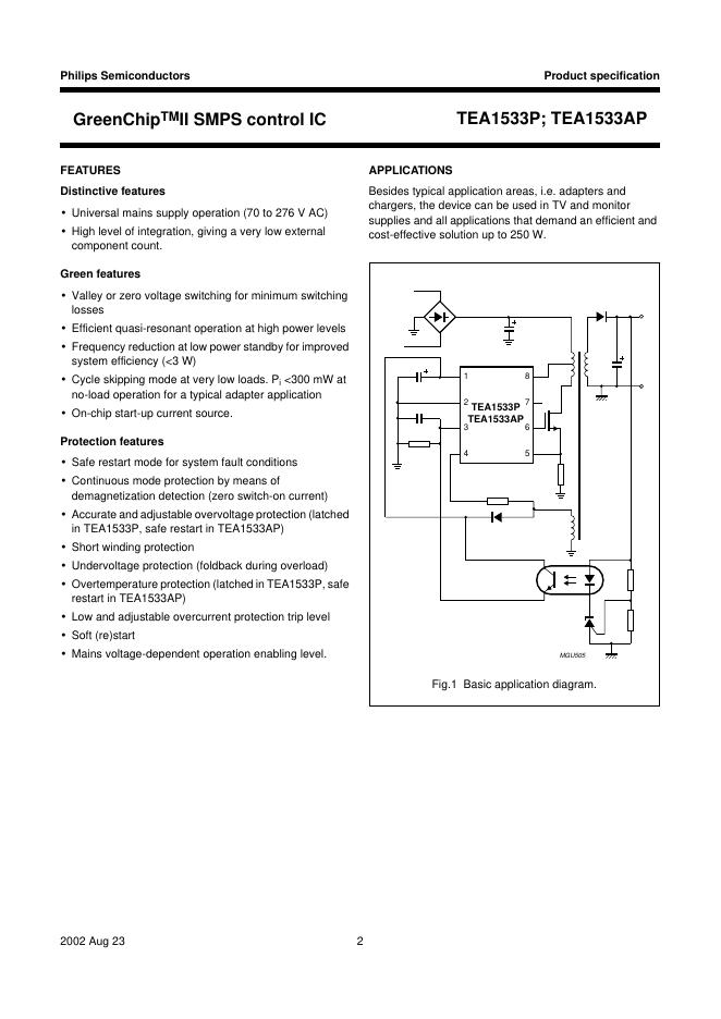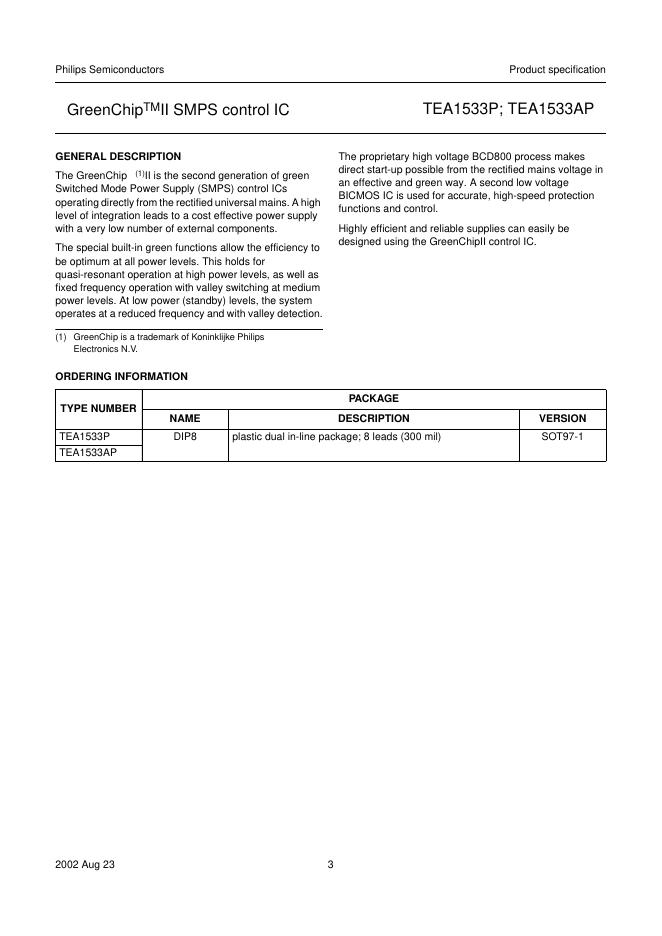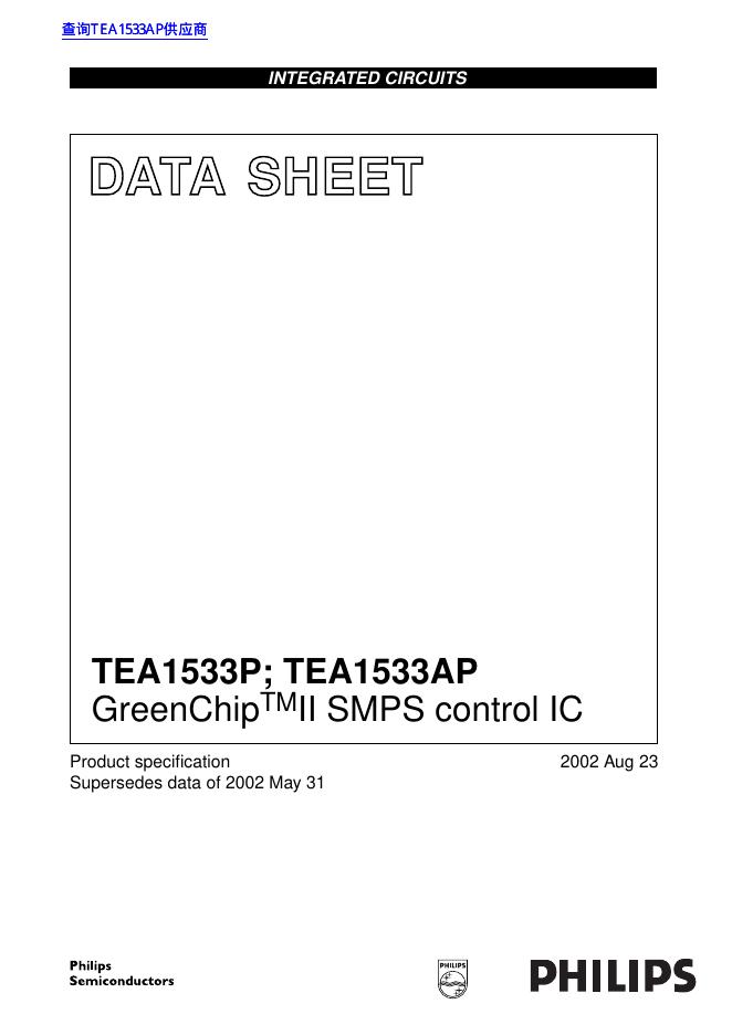 PHILIPS TEA1533P; TEA1533AP GreenChip II SMPS control IC 数据手册.pdf