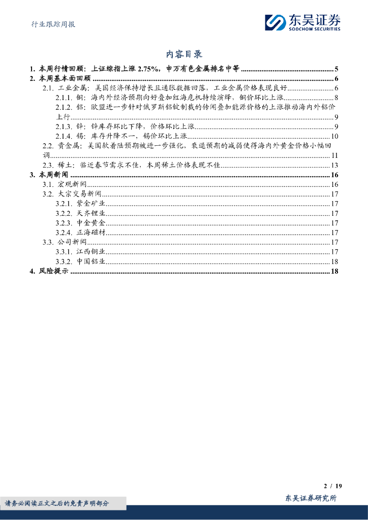 东吴证券:证券研究报告·行业跟踪周报·有色金属:有色金属行业跟踪周报美国“软着陆”概率增加叠加国内超预期降准释放流动性,海内外工业金属价格上涨.pdf