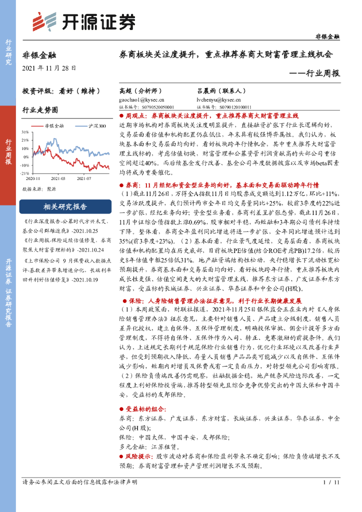 开源证券:非银金融行业周报:券商板块关注度提升,重点推荐券商大财富管理主线机会.pdf