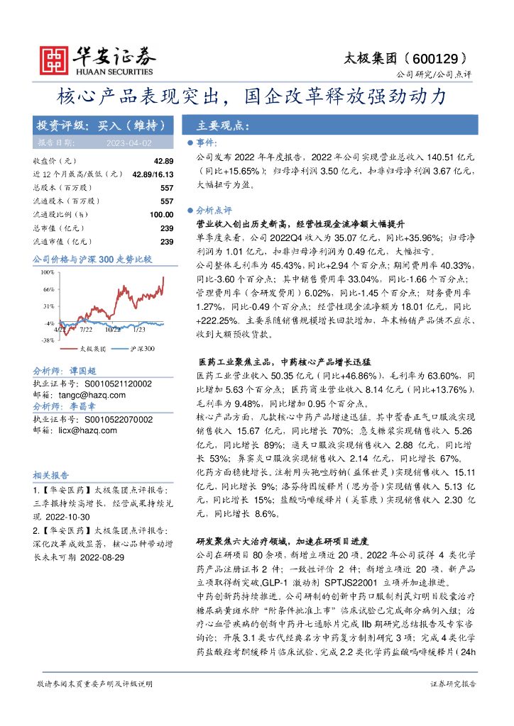 华安证券:太极集团(600129)-核心产品表现突出,国企改革释放强劲动力.pdf