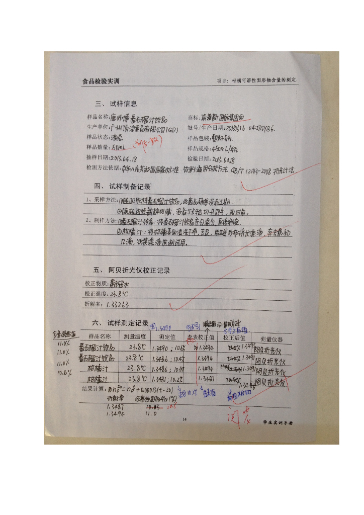 《食品检验》实训报告2-柑橘可溶性固形物的测定.pdf