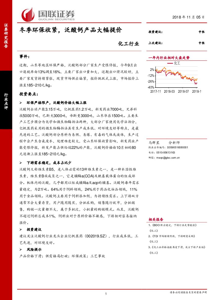 国联证券:化工行业点评:冬季环保收紧,泛酸钙产品大幅提价.pdf