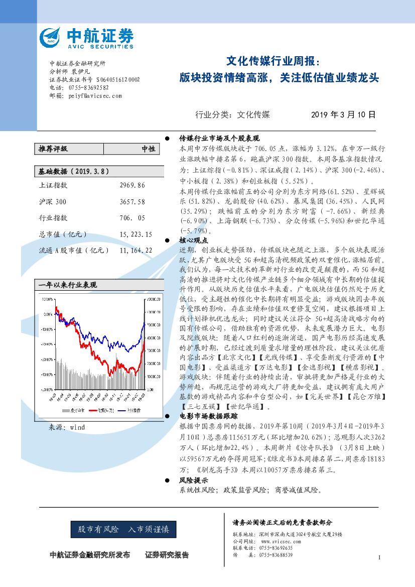 中航证券:文化传媒行业周报:版块投资情绪高涨,关注低估值业绩龙头.pdf