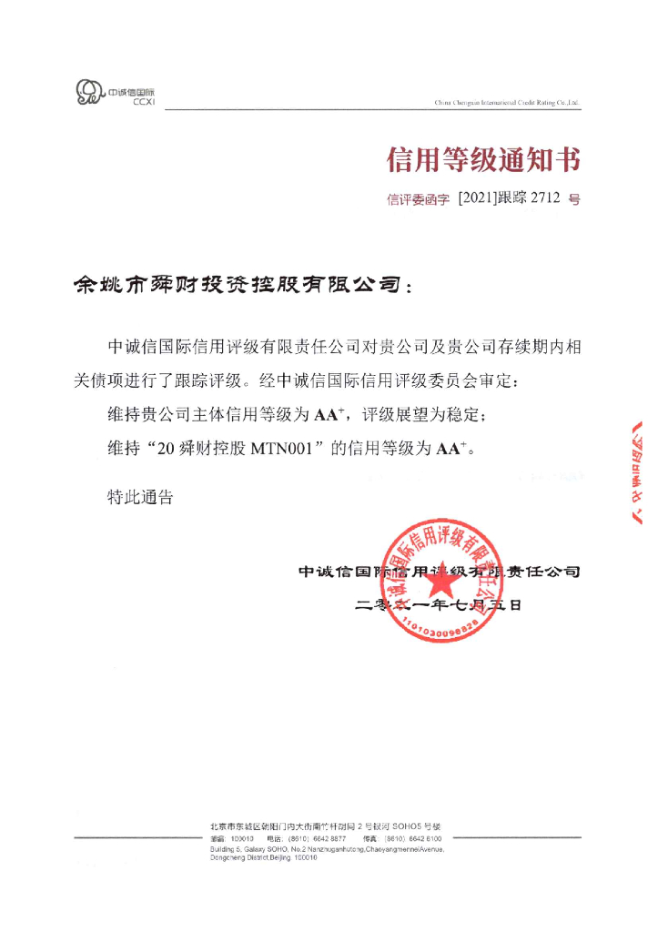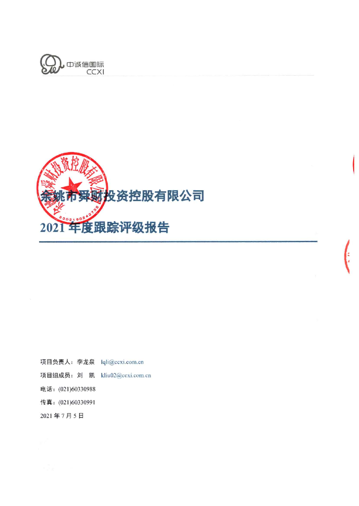 中诚信:余姚市舜财投资控股有限公司主体信用评级报告及跟踪评级安排.pdf