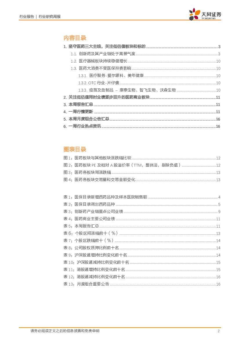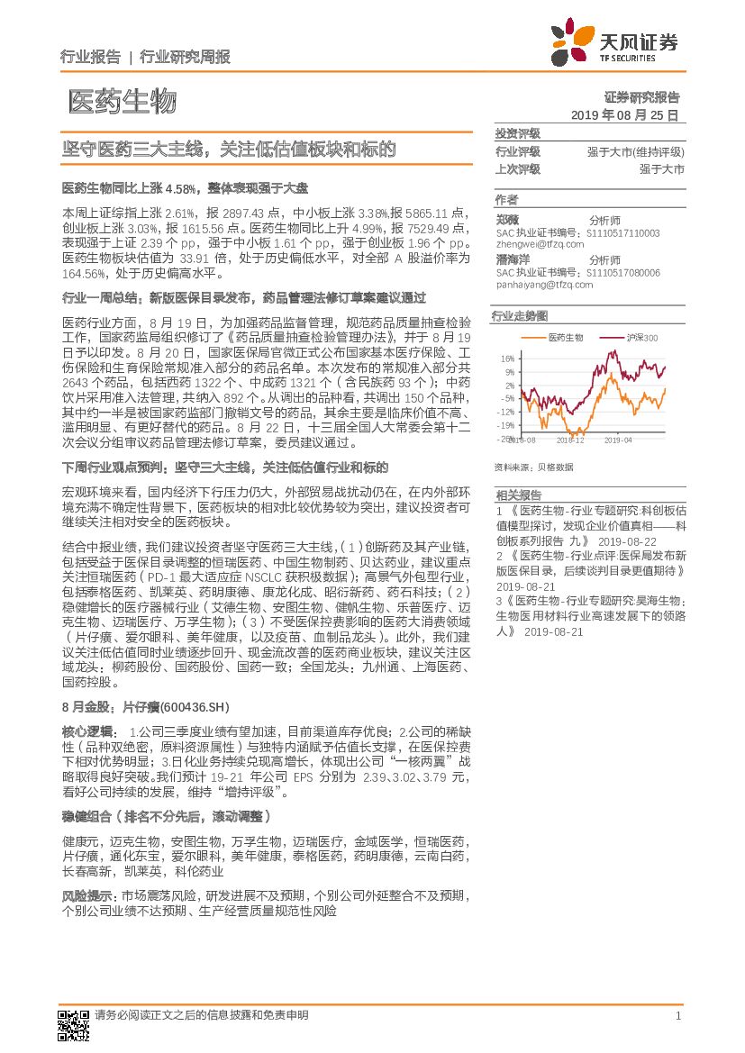 天风证券:医药生物行业研究周报:坚守医药三大主线,关注低估值板块和标的.pdf