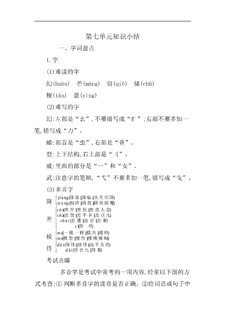 统编语文三年级下册第七单元知识小结.doc