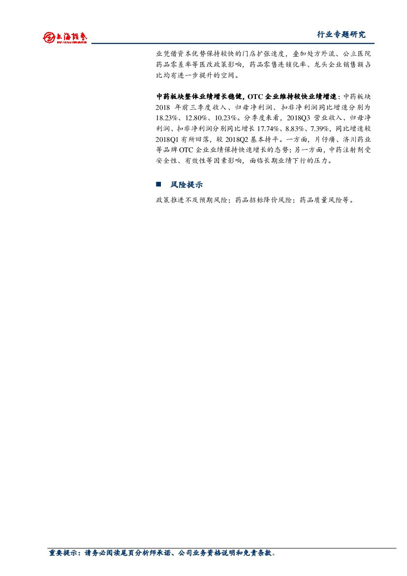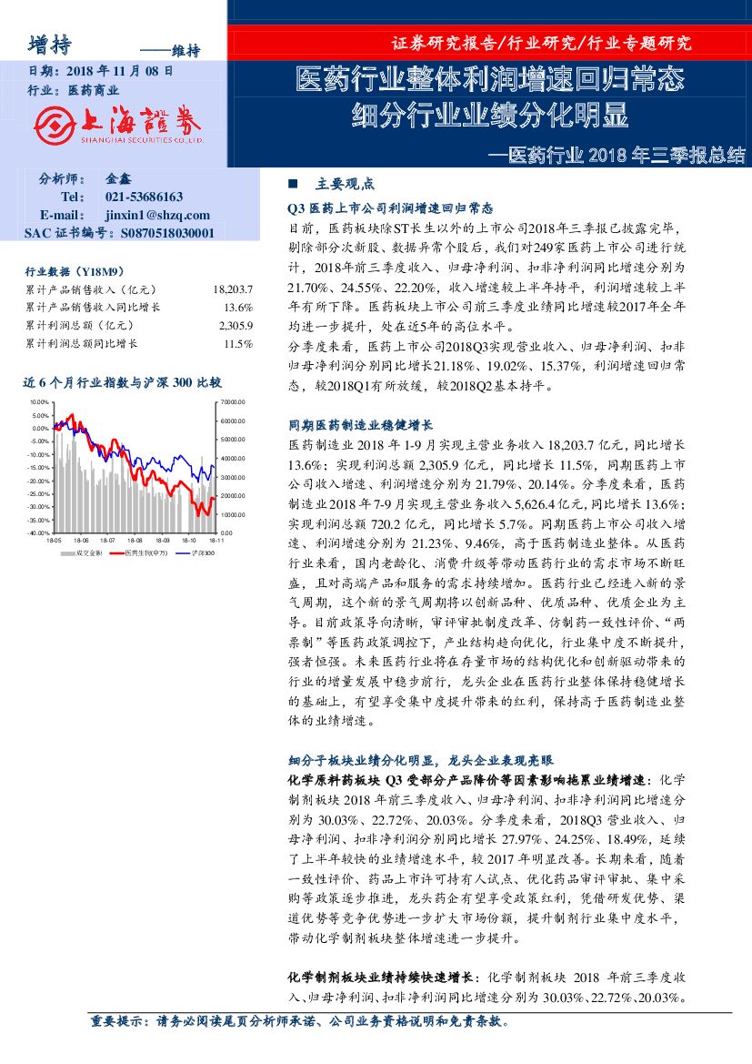 上海证券:医药行业2018年三季报总结:医药行业整体利润增速回归常态 细分行业业绩分化明显.pdf