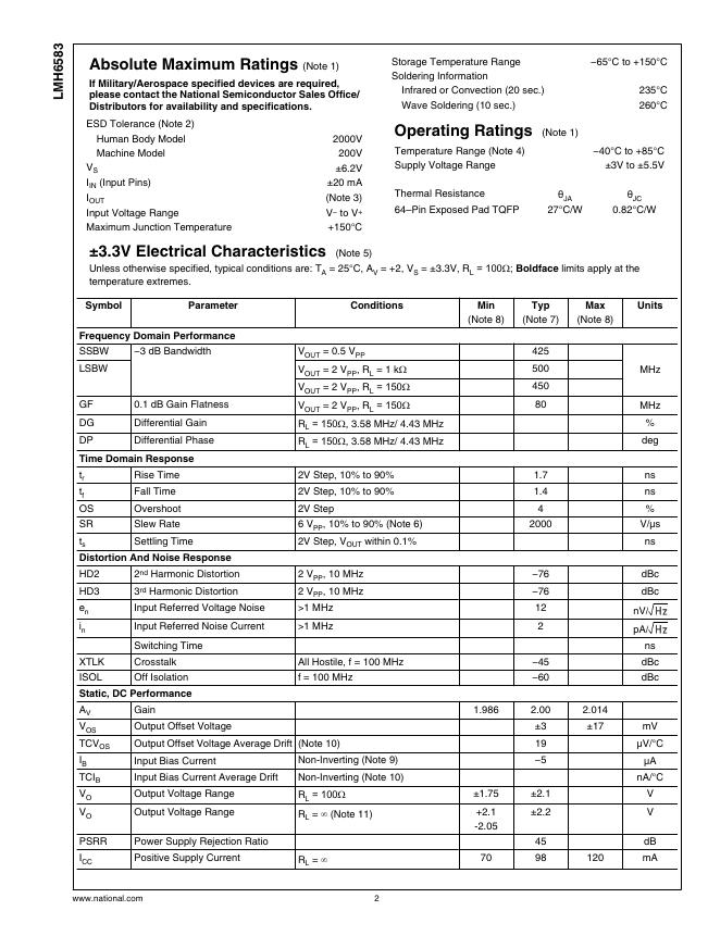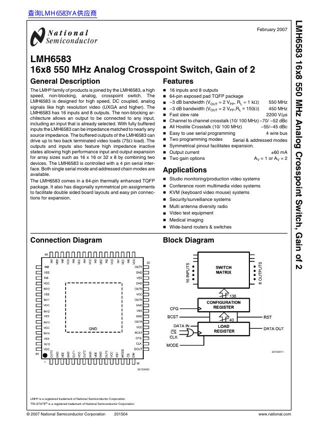 NATIONAL SEMICONDUCTOR - May 27, 2008 DS15BA101 1.5 Gbps Differential Buffer with Adjustable Output Voltage General 说明书