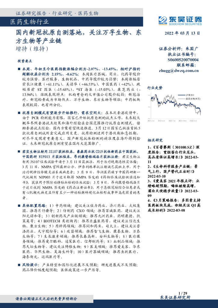 东吴证券:医药生物行业:国内新冠抗原自测落地,关注万孚生物、东方生物等产业链.pdf