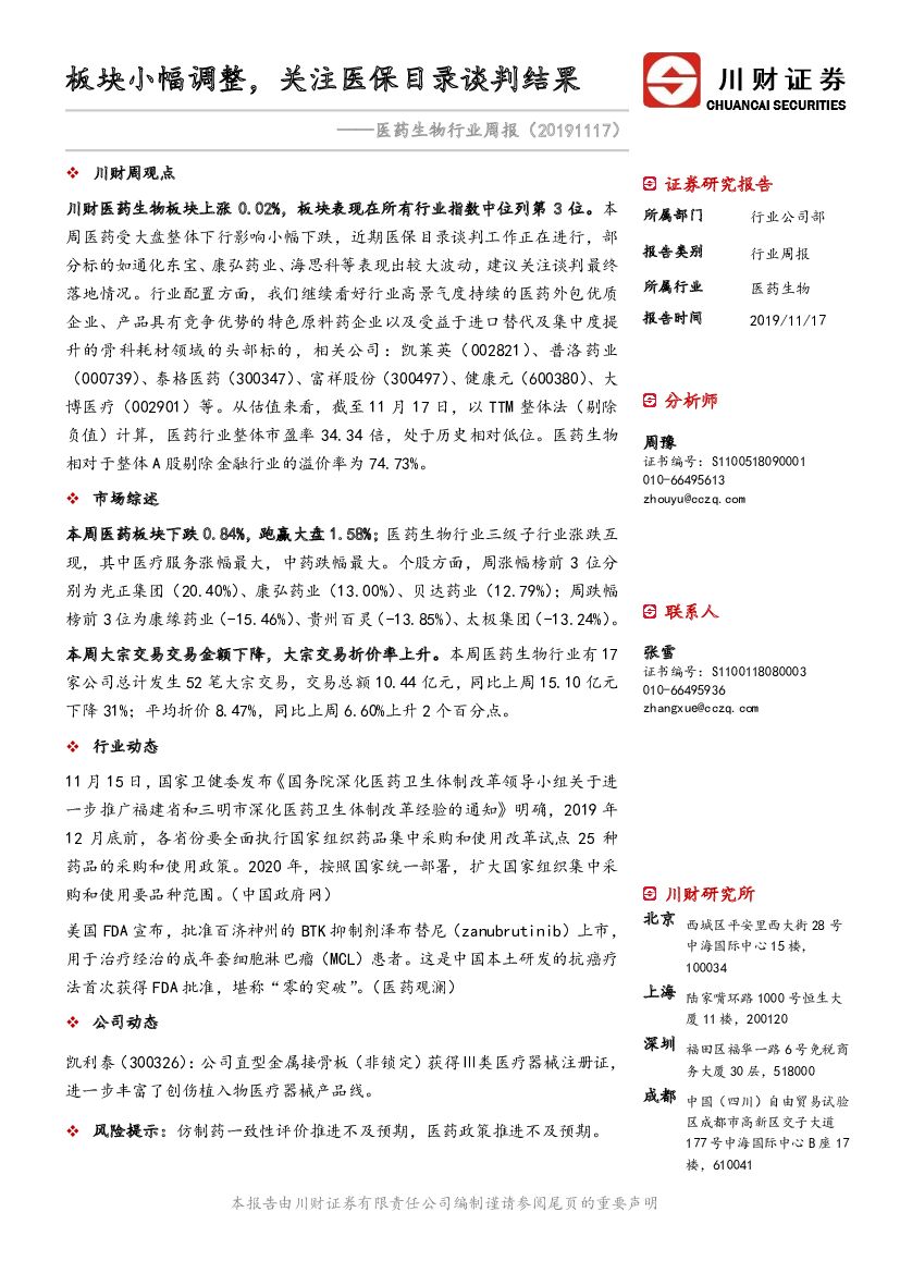 川财证券:医药生物行业周报:板块小幅调整,关注医保目录谈判结果.pdf