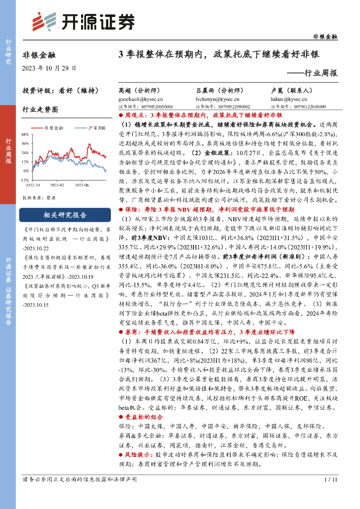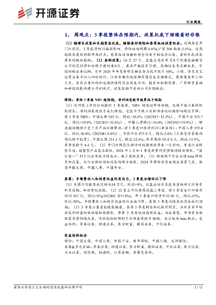 开源证券:非银金融行业周报:3季报整体在预期内,政策托底下继续看好非银.pdf