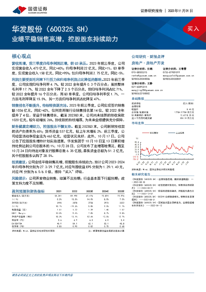 国信证券:华发股份(600325)-业绩平稳销售高增,控股股东持续助力.pdf