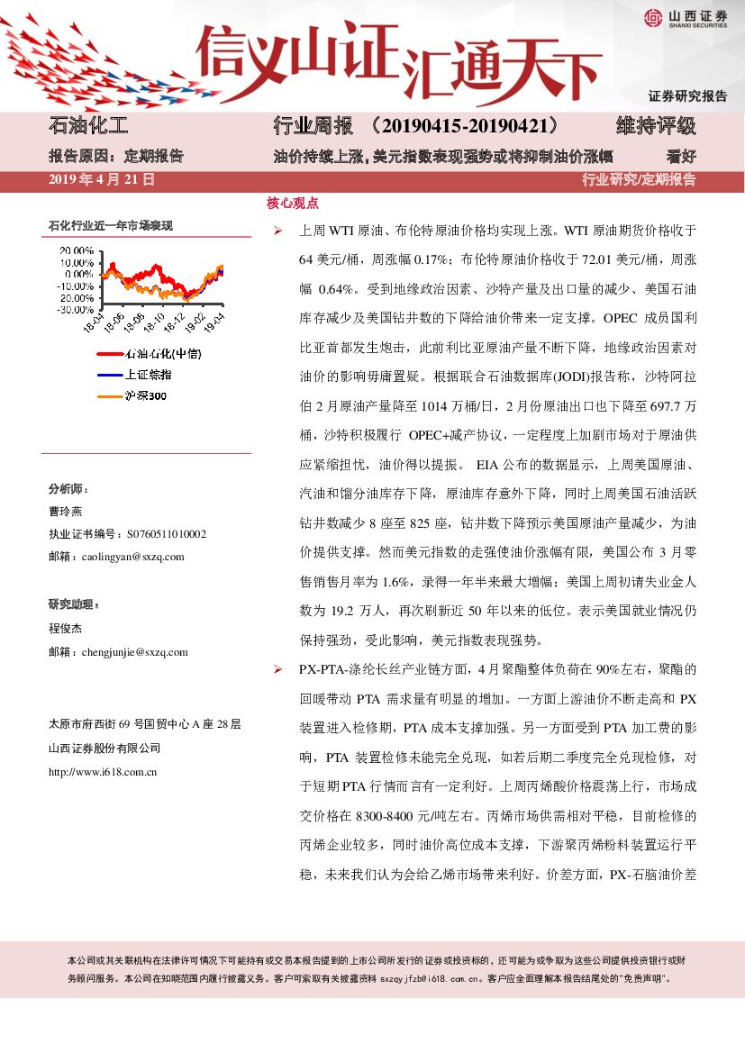 山西证券:石油化工行业周报:油价持续上涨,美元指数表现强势或将抑制油价涨幅.pdf