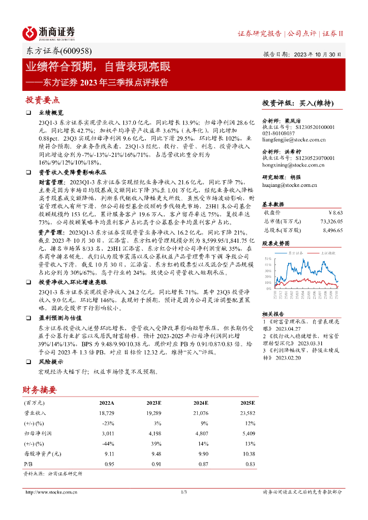 浙商证券:东方证券(600958)-业绩符合预期,自营表现亮眼.pdf