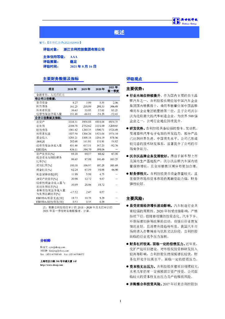 新世纪:浙江吉利控股集团有限公司主体信用评级报告.pdf