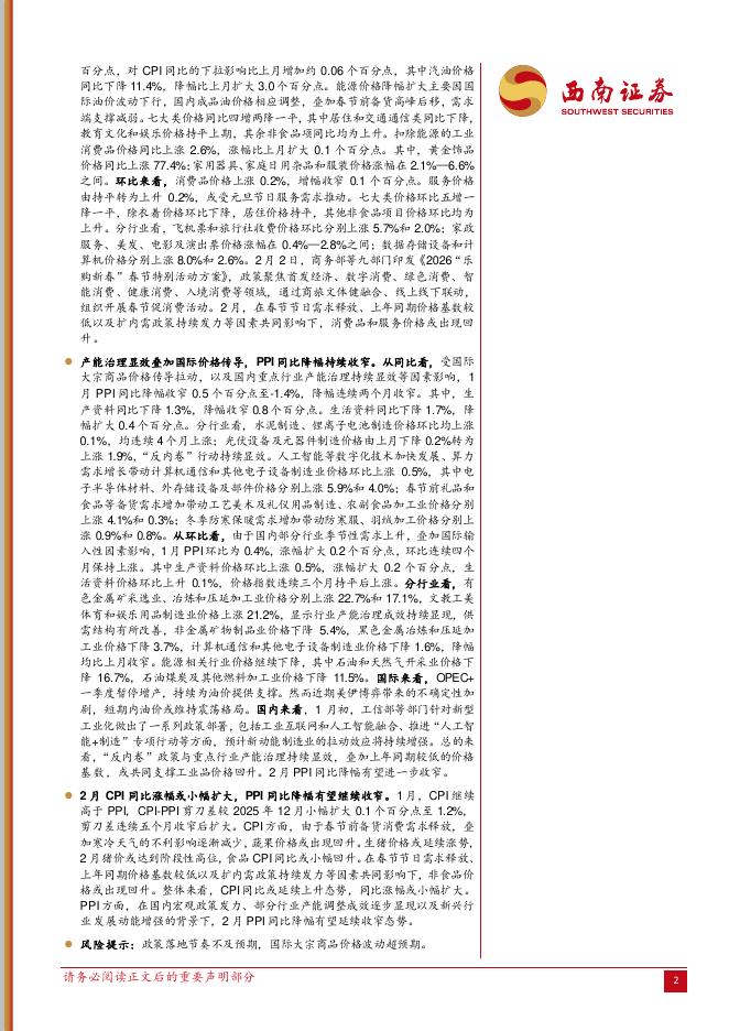 西南证券:2026年1月通胀数据点评:菜价和能源价格拖累CPI,PPI同比降幅持续收窄-260212.pdf