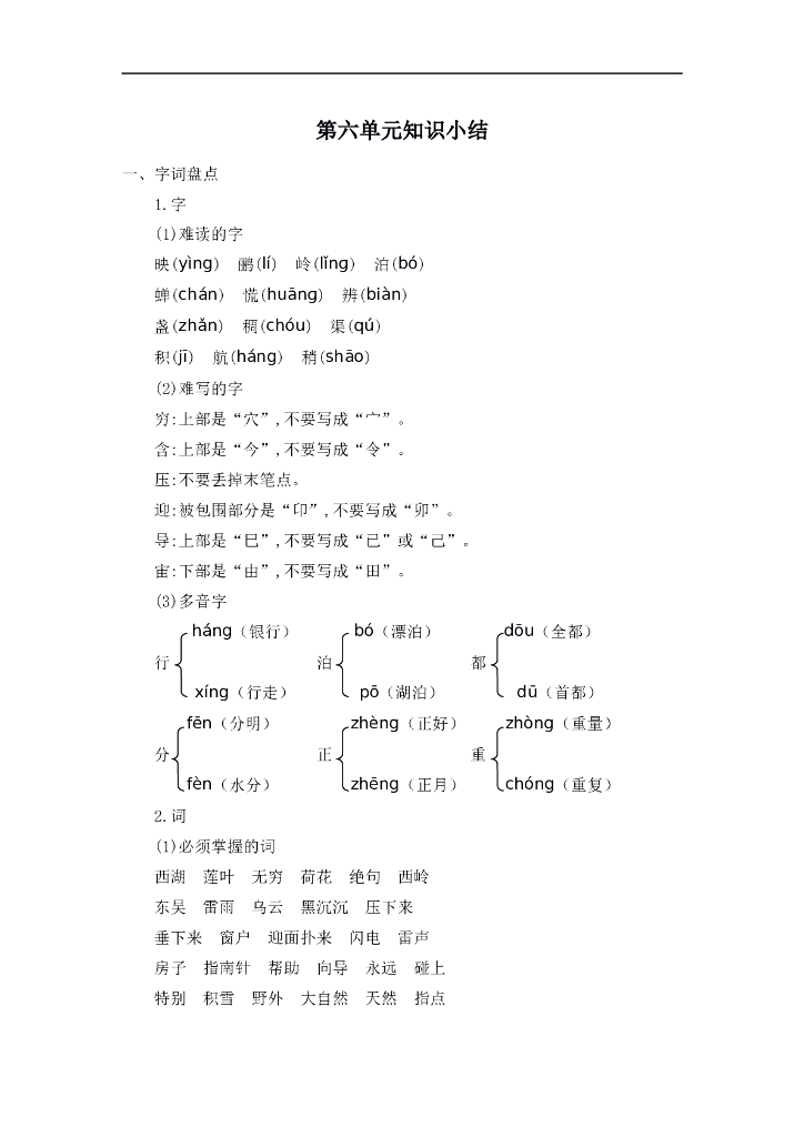 统编语文二年级下册第六单元知识小结.doc