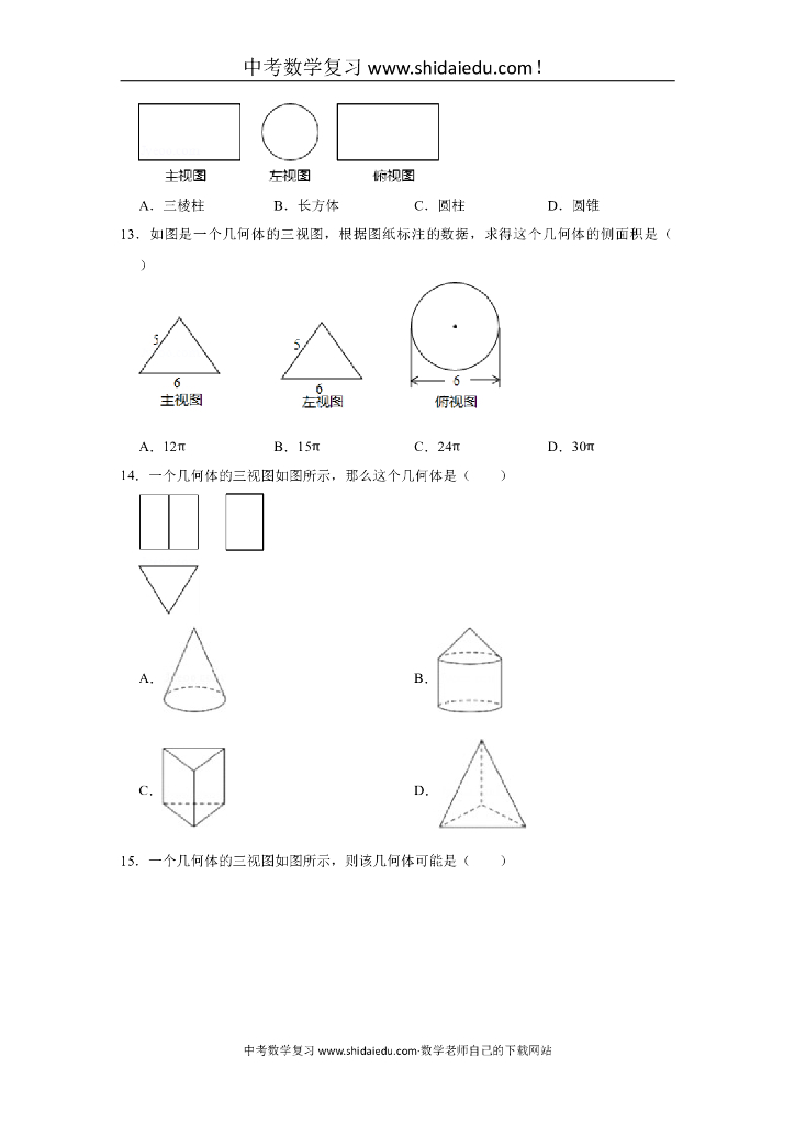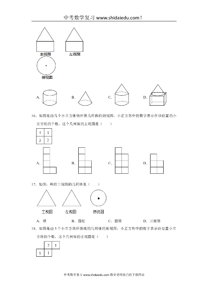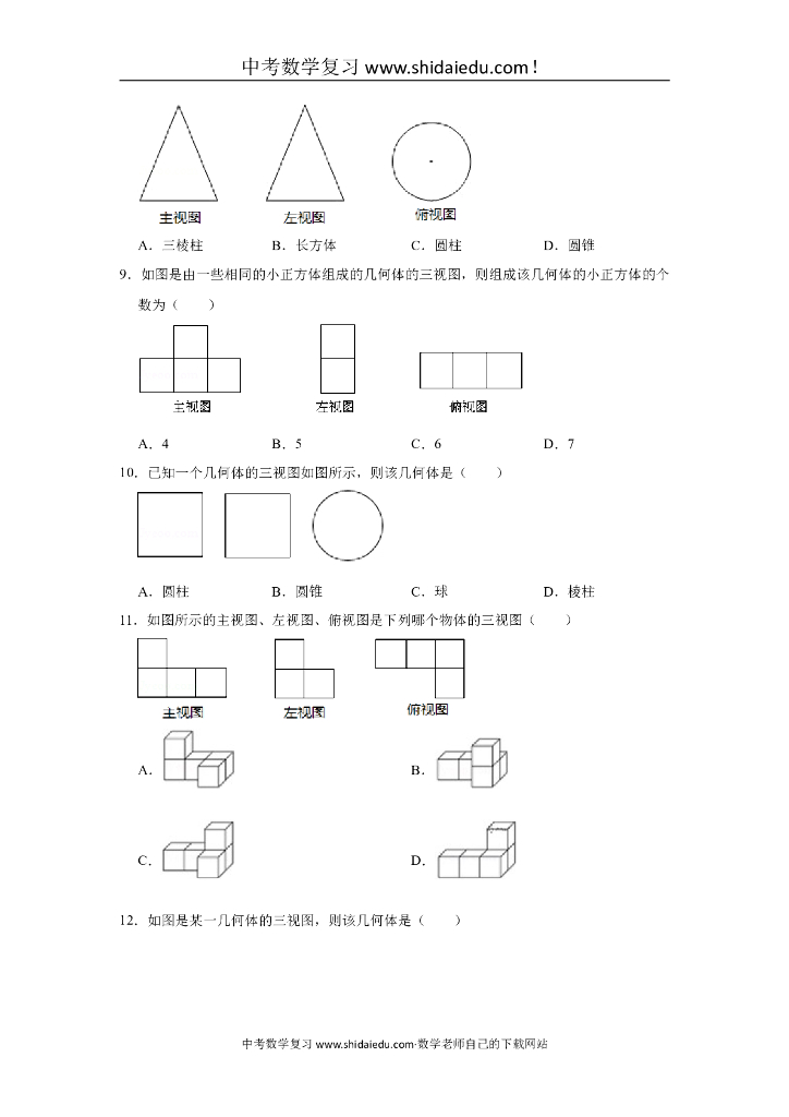 苏科版七年级(上)-中考题同步试卷:5.4-主视图、左视图、俯视图(11).doc