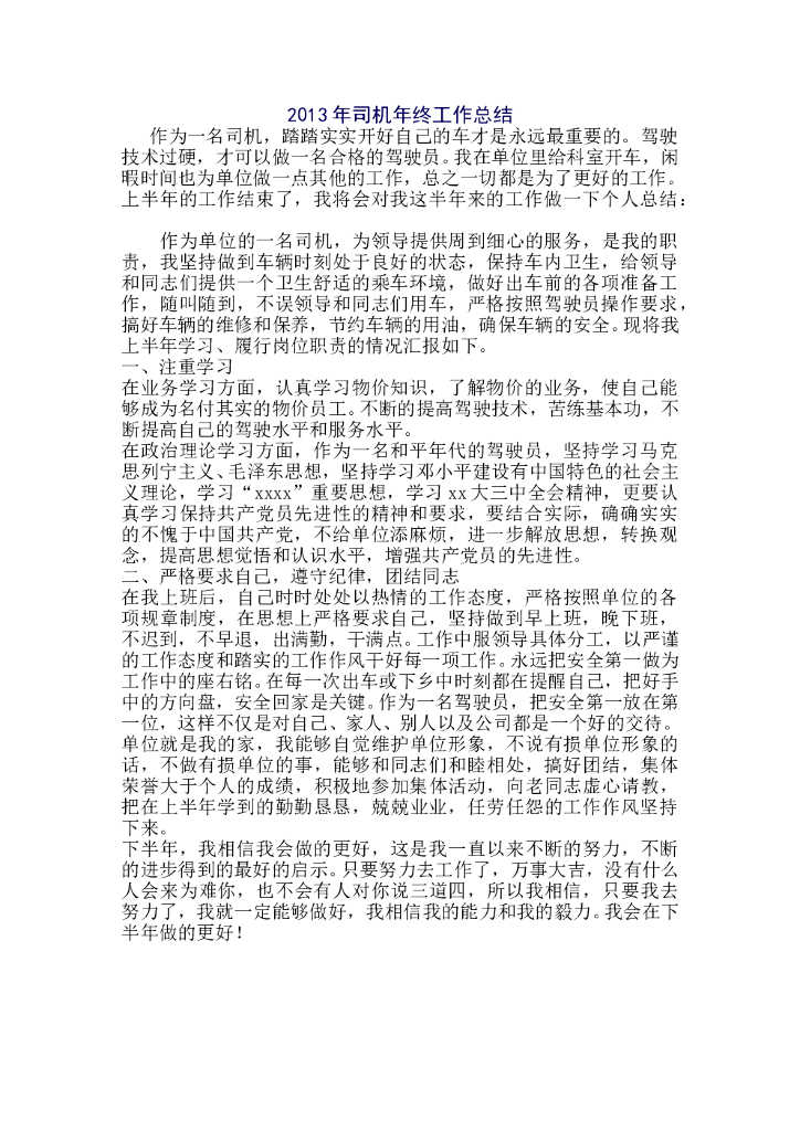 2013年司机年终工作总结.doc