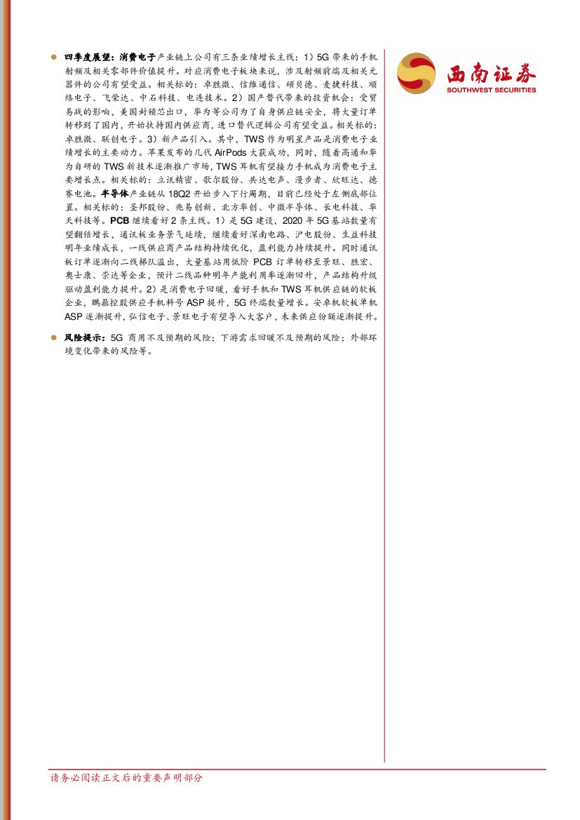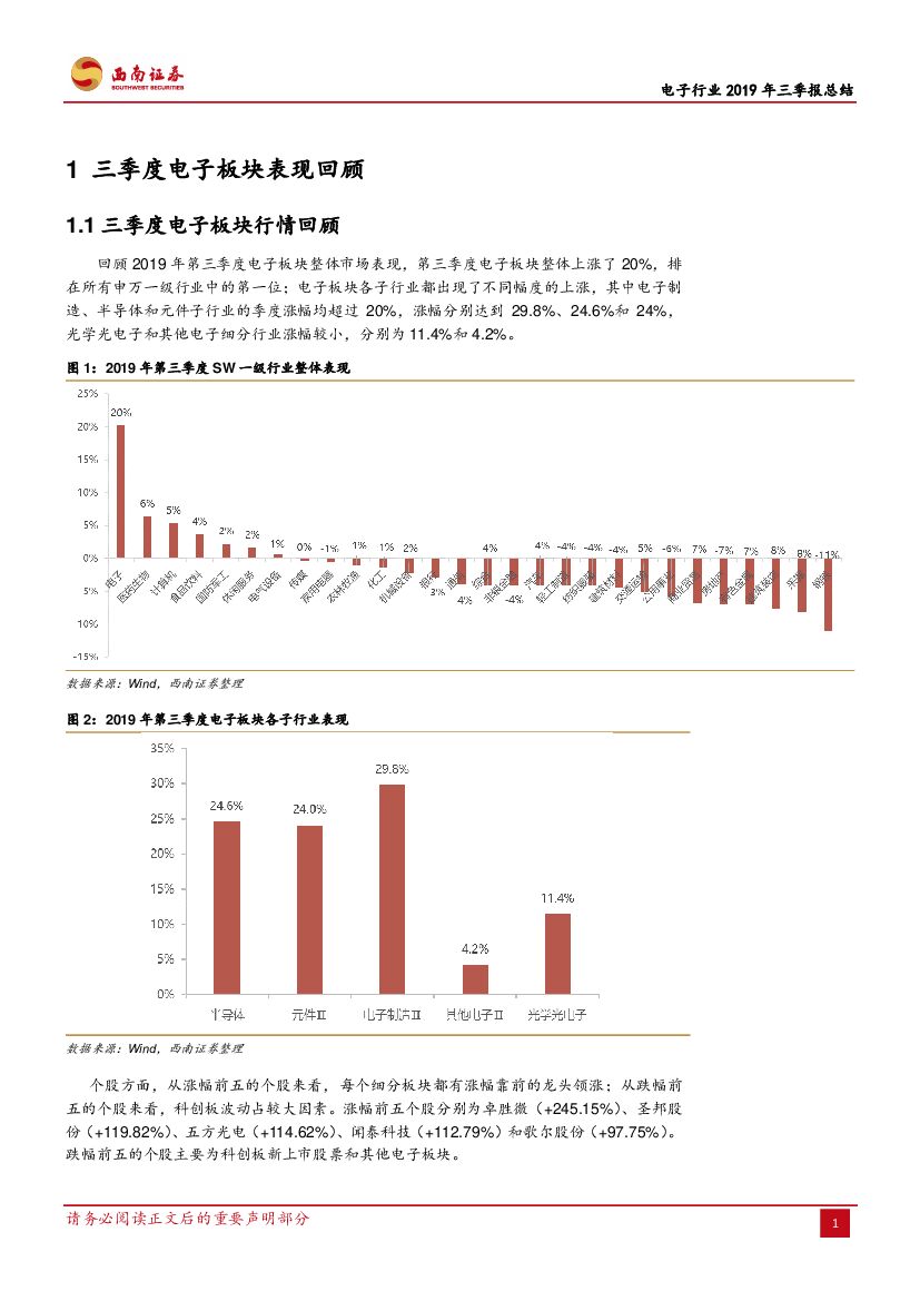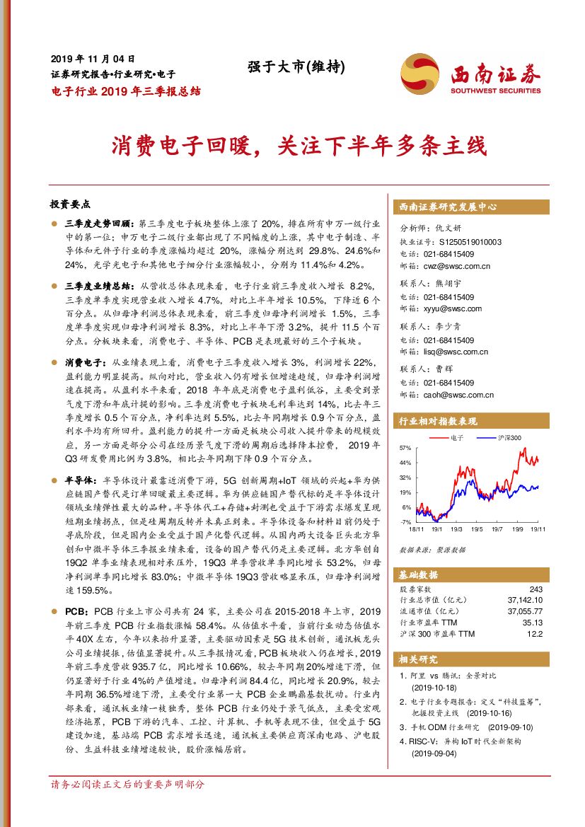 西南证券:电子行业2019年三季报总结:消费电子回暖,关注下半年多条主线.pdf