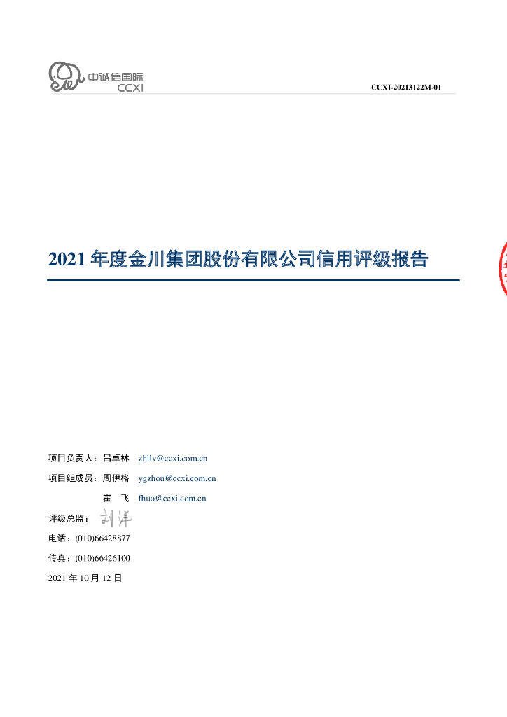中诚信:2021年度金川集团股份有限公司主体信用评级报告.pdf