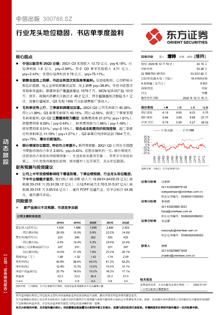 东方证券:中信出版(300788)-行业龙头地位稳固,书店单季度盈利.pdf