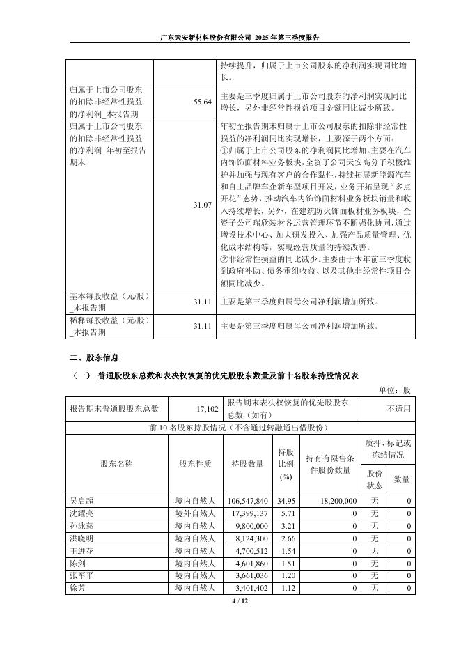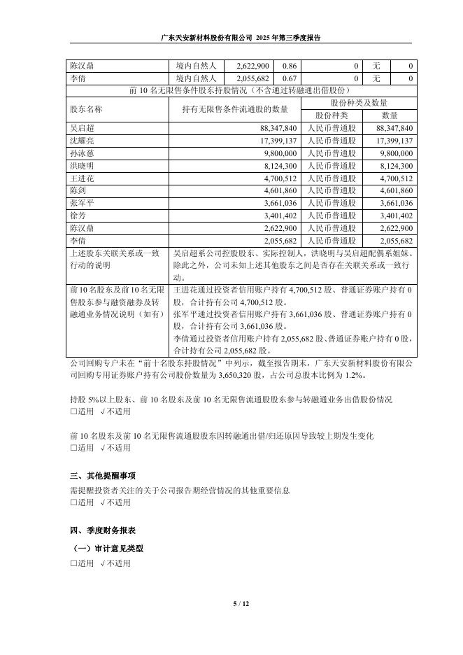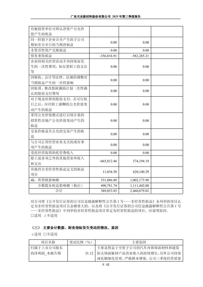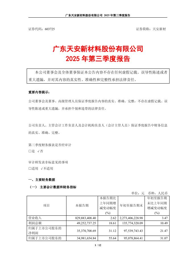 603725-天安新材:天安新材2025年第三季度报告.pdf