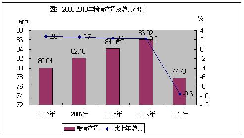 表1 2010年主要农产品产量及增长速度