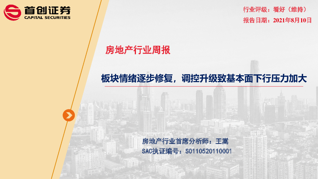 首创证券:房地产行业周报:板块情绪逐步修复,调控升级致基本面下行压力加大.pdf