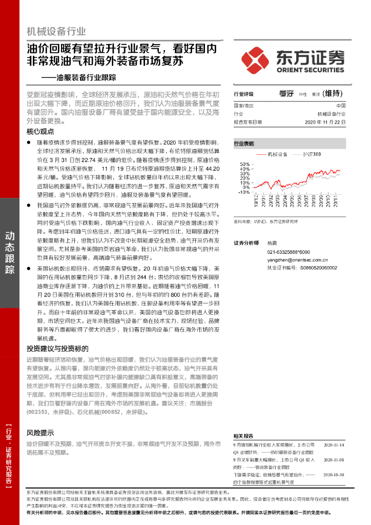 东方证券:油服装备行业跟踪:油价回暖有望拉升行业景气,看好国内非常规油气和海外装备市场复苏.pdf
