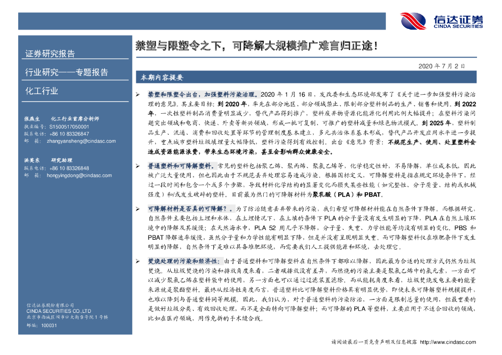 信达证券:化工行业专题报告:禁塑与限塑令之下,可降解大规模推广难言归正途!.pdf
