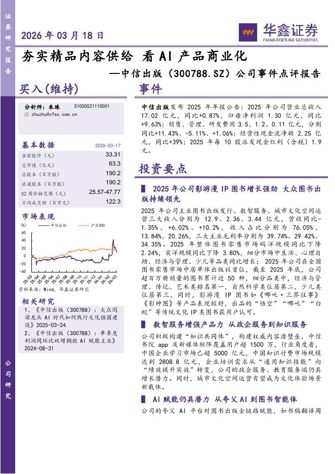 华鑫证券:中信出版(300788)-公司事件点评报告:夯实精品内容供给看AI产品商业化.pdf
