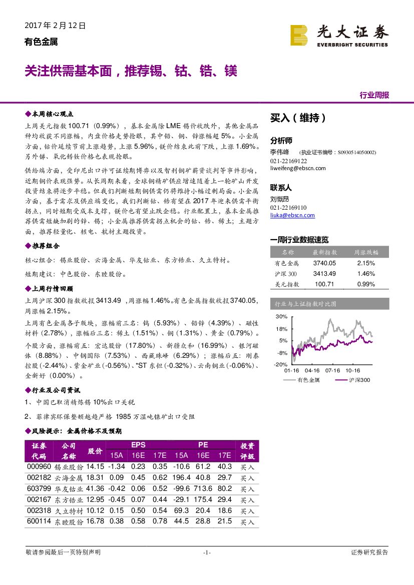 光大证券:有色金属行业周报:关注供需基本面,推荐锡、钴、锆、镁.pdf