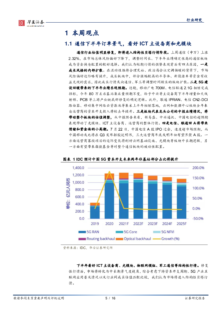 华安证券:通信行业周报:通信下半年订单景气,看好ICT主设备商和光模块.pdf