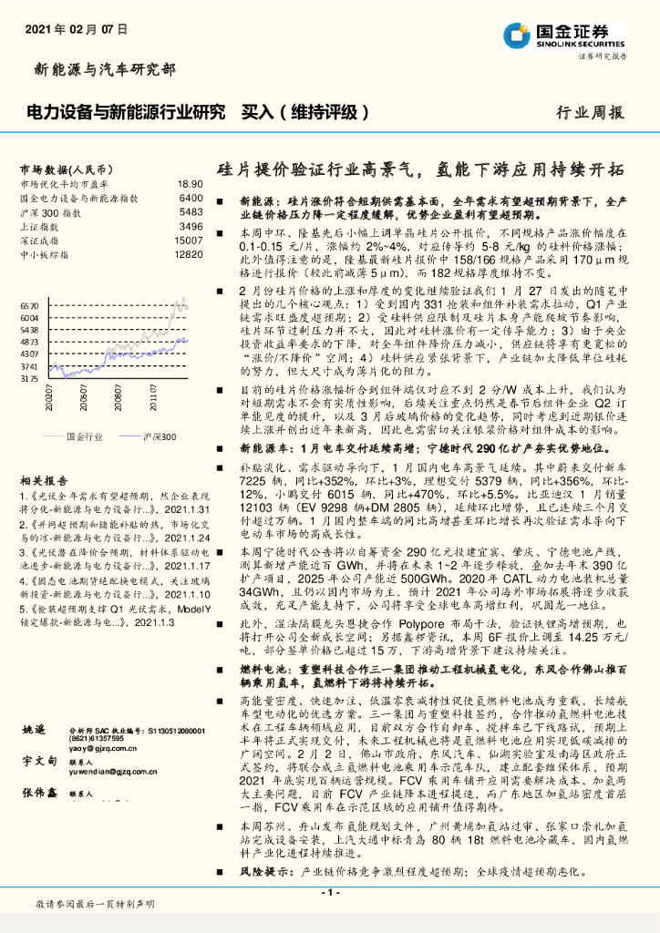 国金证券:电力设备与新能源行业研究:硅片提价验证行业高景气,氢能下游应用持续开拓.pdf