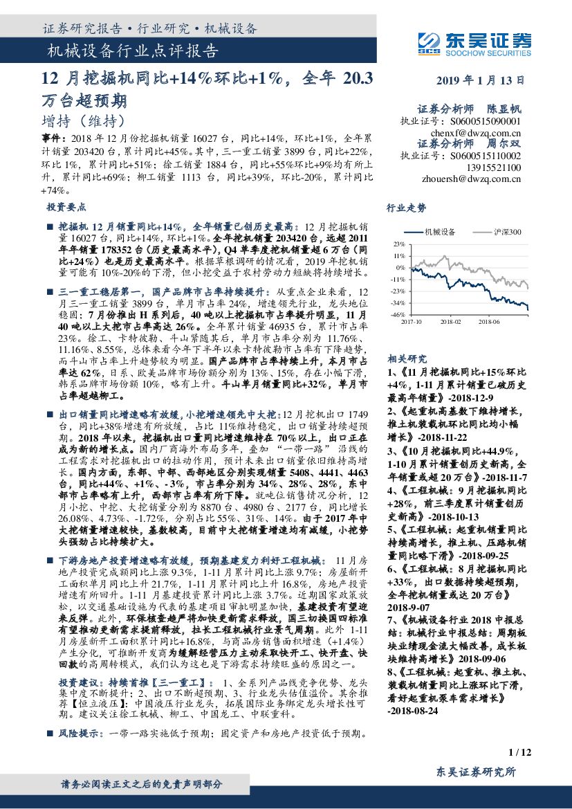 东吴证券:机械设备行业点评报告:12月挖掘机同比+14%环比+1%,全年20.3万台超预期.pdf