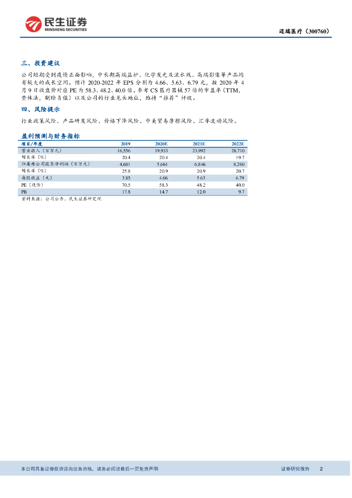 民生证券:迈瑞医疗2020年第一季度业绩预告点评:疫情相关产品增长迅猛,20Q1业绩增长约30%.pdf