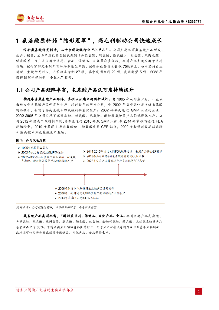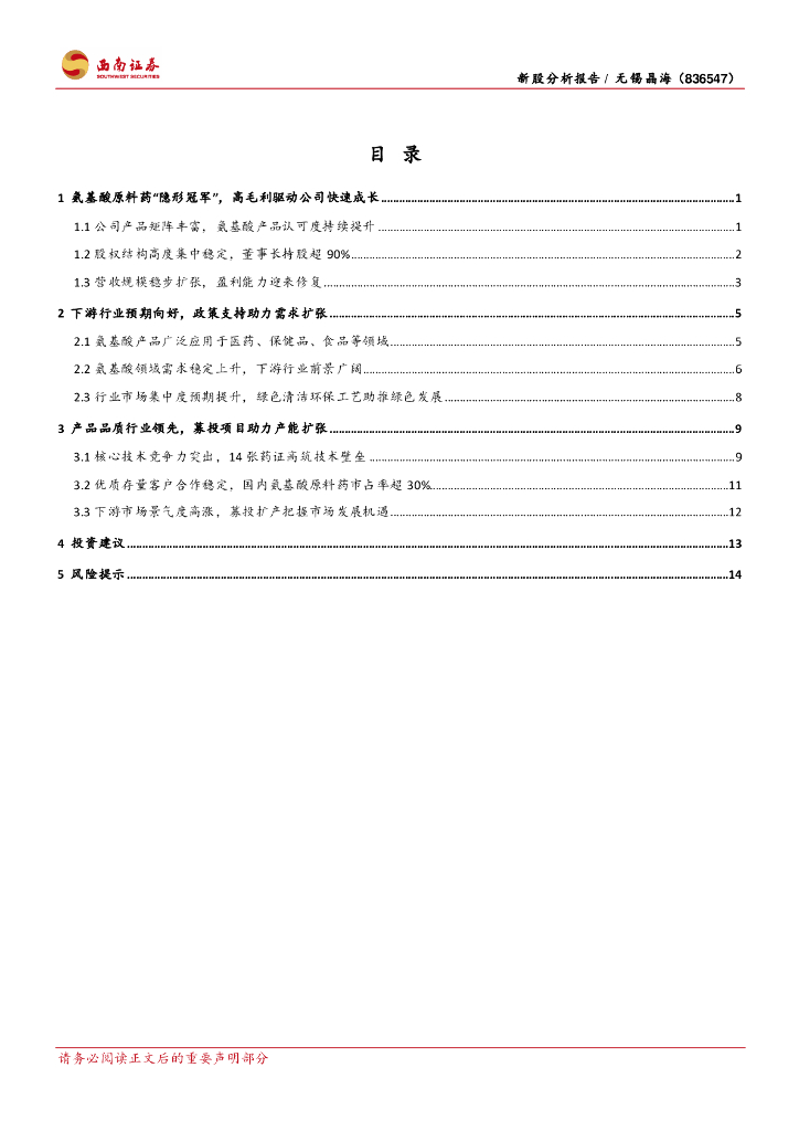 西南证券:无锡晶海(836547)-氨基酸原料药“隐形冠军”,募投扩产助推业绩增长.pdf