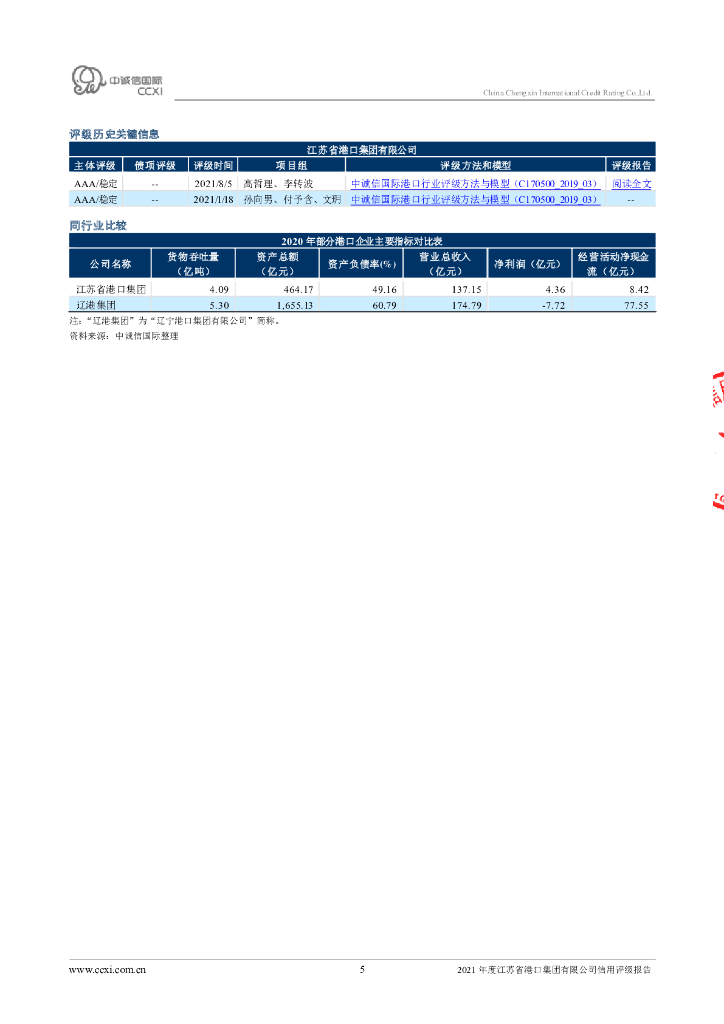 中诚信:江苏省港口集团有限公司主体评级报告.pdf