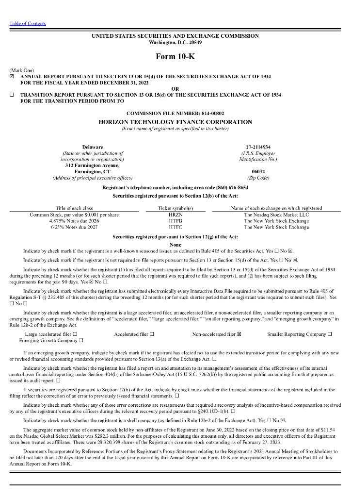 Horizon Technology Finance Corporation(HRZN)2022财年年度报告(英文版).pdf