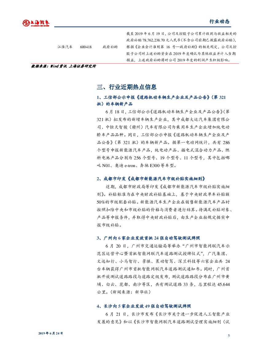 上海证券:汽车行业周报:广州、长沙相继发放自动驾驶测试牌照.pdf
