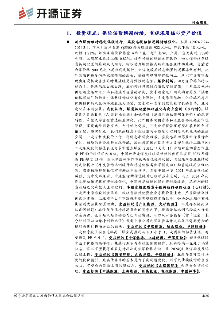 开源证券:煤炭开采行业周报:供给偏紧预期持续,重视煤炭核心资产价值.pdf