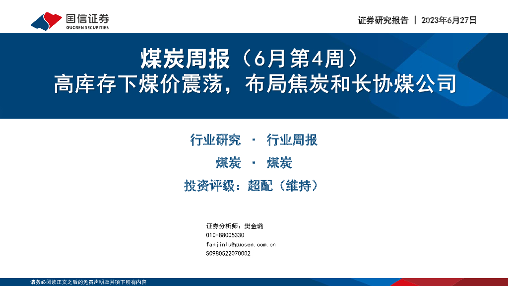 国信证券:煤炭行业周报(6月第4周):高库存下煤价震荡,布局焦炭和长协煤公司.pdf