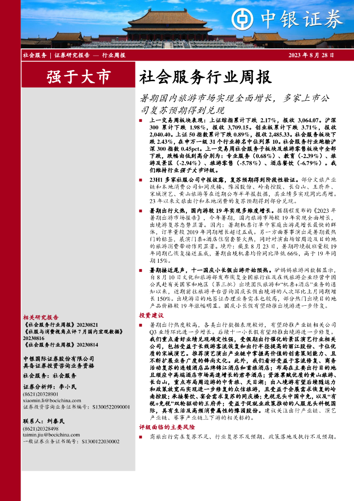 中银证券:社会服务行业周报:暑期国内旅游市场实现全面增长,多家上市公司复苏预期得到兑现.pdf