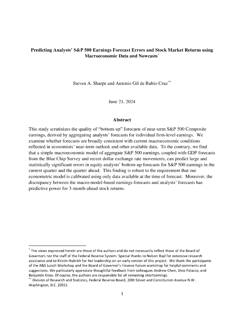 美联储:使用宏观经济数据和Nowscast预测分析师的标普500收益预测误差和股市回报(英文版).pdf