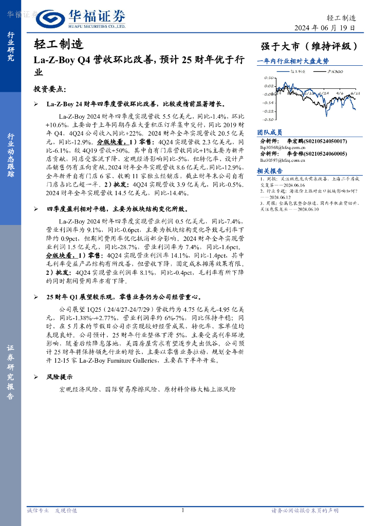华福证券:轻工制造行业动态跟踪:La-Z-BoyQ4营收环比改善,预计25财年优于行业.pdf
