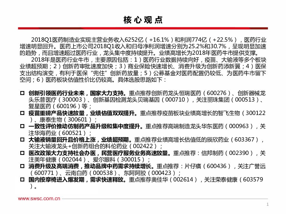 西南证券:2018年5月医药投资策略:2018Q1业绩加速明显,支持医药板块持续牛市.pdf